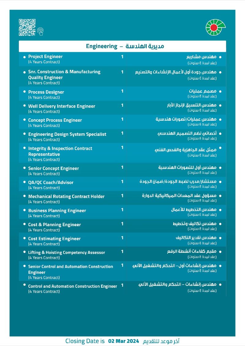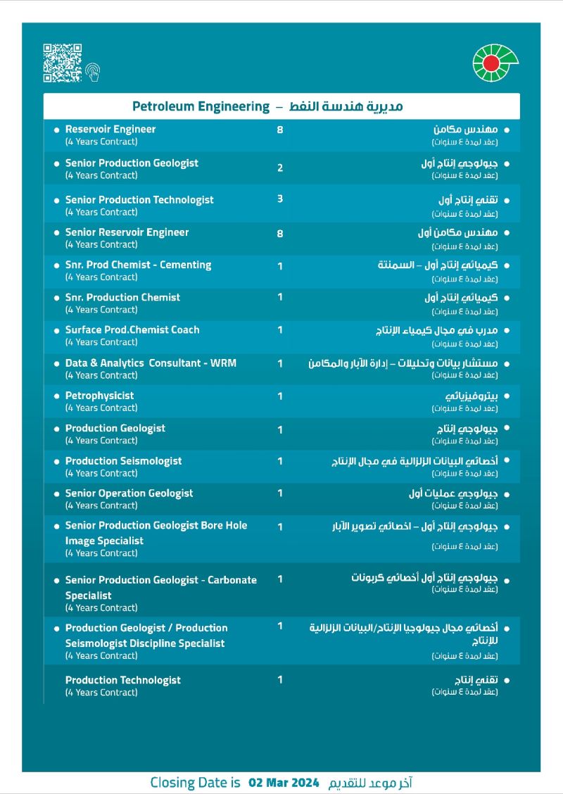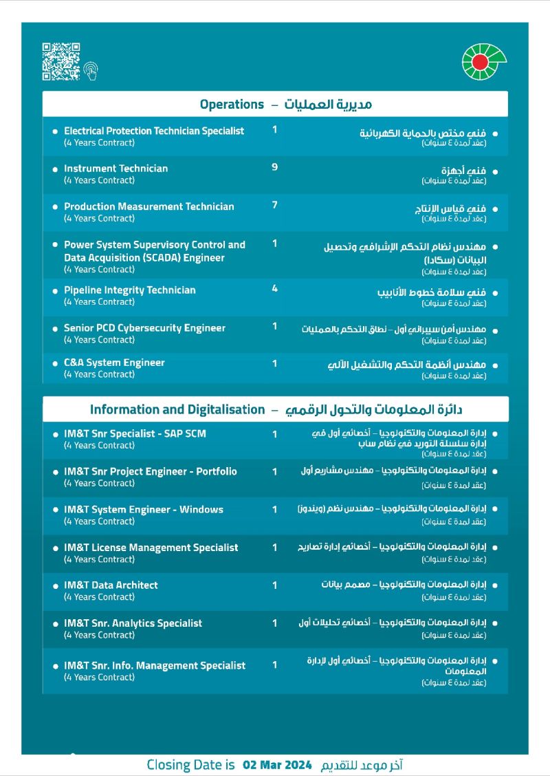 - تتوفر وظيفة مستشار بيانات وتحليلات (إدارة الآبار والمكامن).