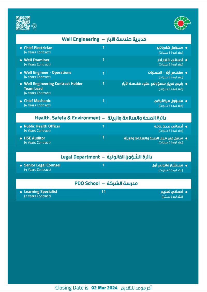 مسميات وظائف تنمية نفط عمان في سلطنة عمان