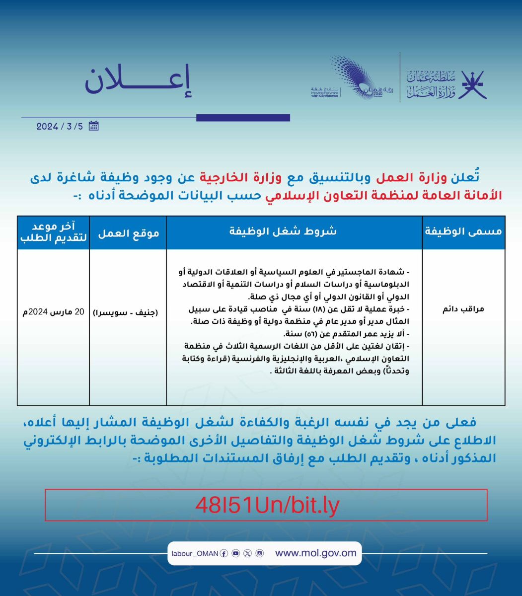 تفاصيل وظائف منظمة التعاون الإسلامي بسلطنة عمان